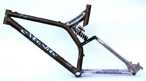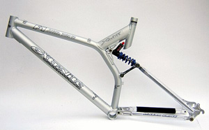 F1: Superlett racingramme med Horst Link. Bakdemper med pedal platform. 75mm vandring. Totalvekt 1980g inkl. bakdemper (small, eloksert, mykeste fjær).