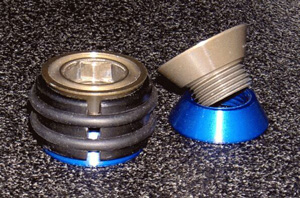 The Head2: Superlett styrelager med rustfritt lager nede og radiallager oppe. 62g inkl. topplate og bolt.